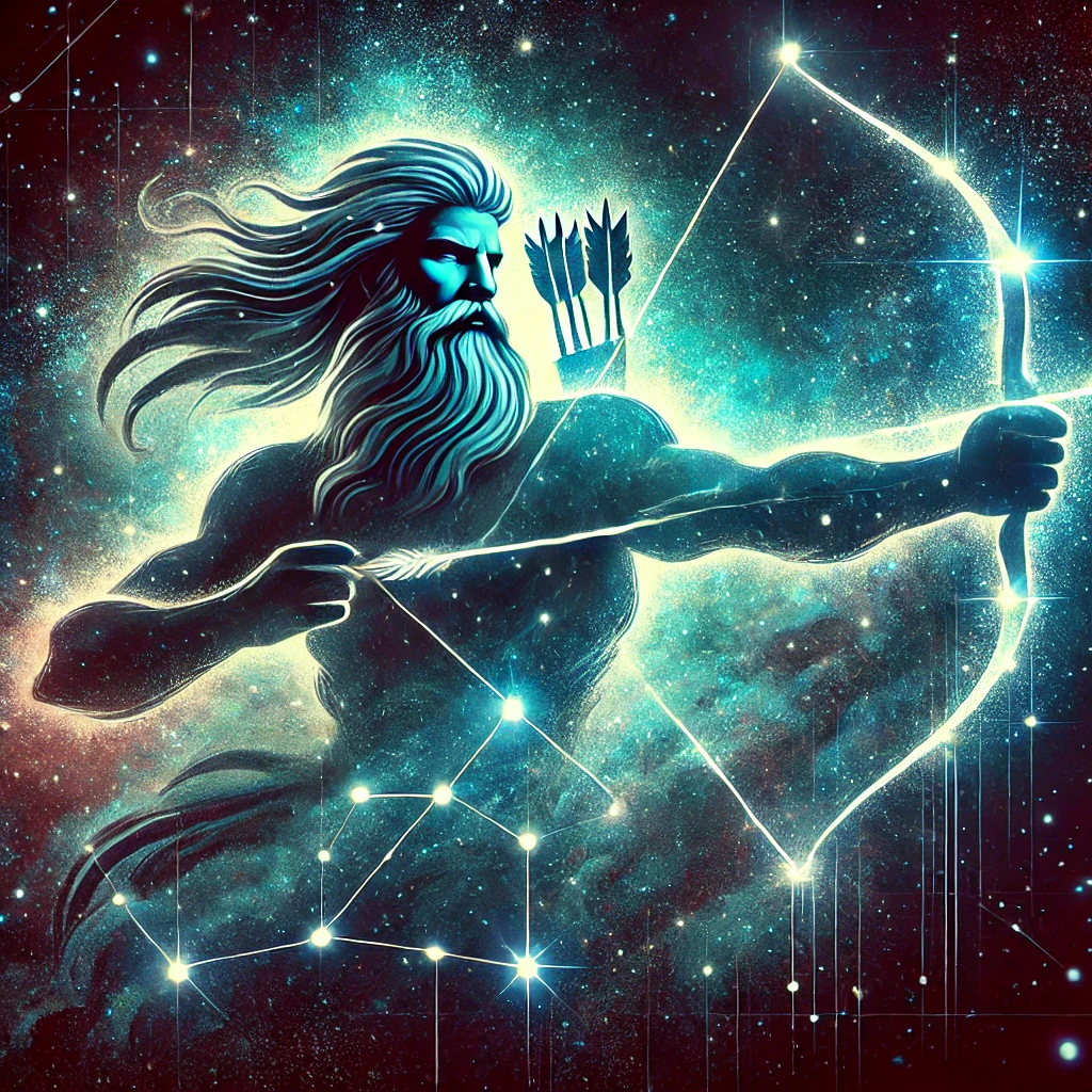 오리온은 그리스 신화에서 강력한 사냥꾼으로, 자신의 능력을 과시하길 좋아했습니다. 그는 여신 아르테미스를 사랑했지만, 그의 자만심이 화를 불러일으켰습니다. 어떤 이야기에서는 아르테미스의 질투심으로 인해 전갈(전갈자리)에 의해 죽임을 당했다고 전해집니다.