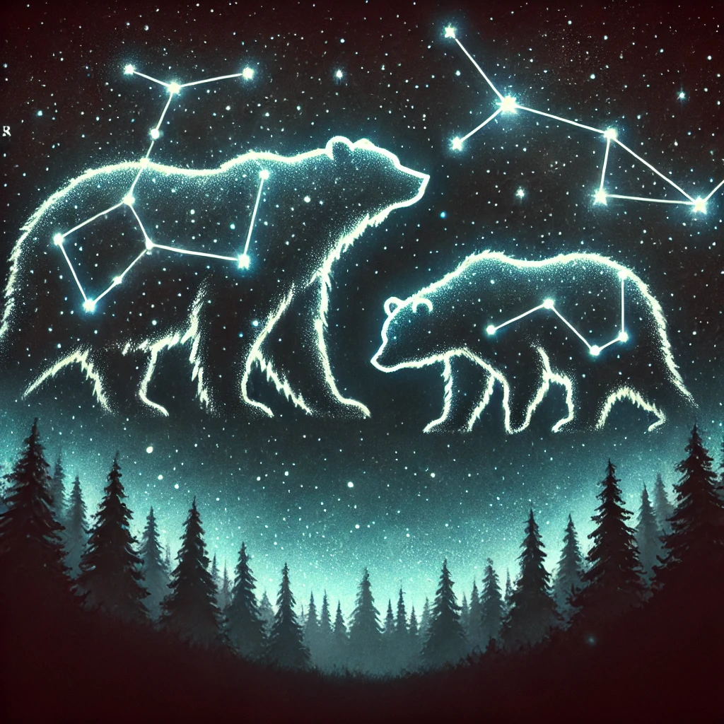 큰곰자리(Ursa Major)는 칼리스토를, 작은곰자리(Ursa Minor)는 아르카스를 상징합니다. 이 별자리들은 북극성을 기준으로 볼 수 있어 방향을 찾는 데 유용한 길잡이로 사용되었습니다.